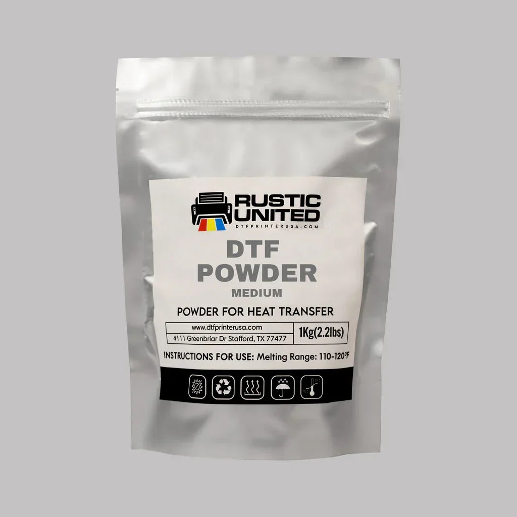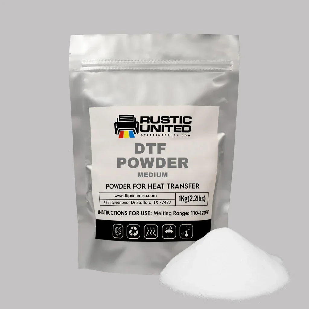 DTF Powder (or DTF Adhesive Powder) is a crucial component in the Direct-to-Film (DTF) printing process. It is a fine, heat-sensitive powder that is applied to the printed design on the transfer film after the image has been printed with DTF inks. The powder acts as an adhesive that helps bond the ink to the fabric during the transfer process, ensuring that the design adheres properly to the garment.