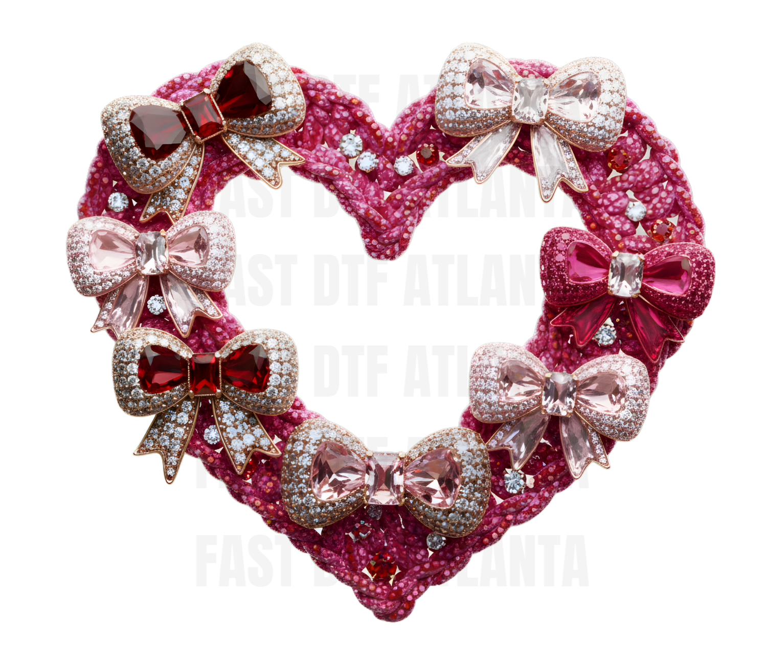 Celebrate love with our elegant Luxury Pink Bow Heart DTF Transfer Ready-To-Press Design, featuring a beautifully crafted heart accented with a luxurious pink bow for a soft yet glamorous Valentine’s look. This romantic design is perfect for creating premium shirts, hoodies, tote bags, and boutique-style gifts. Ideal for Valentine’s Day collections and custom apparel projects that showcase charm and sophistication. High-quality DTF Transfer Ready-To-Press Design from Fast DTF Atlanta, delivering vibrant pink tones, smooth application, and long-lasting durability.